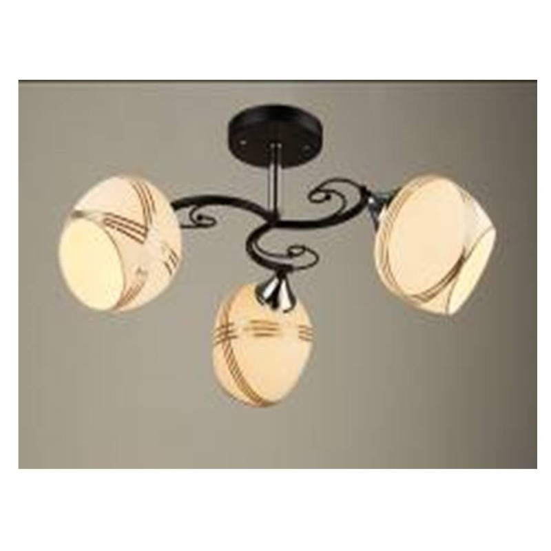 Люстра потолочная на три плафона N3204/3 Характеристики: Стиль исполнения: готический; Количество источников света: 3; Материал плафона: стекло; Материал основания: металл; Тип лампы: люминесцентная; Мощность лампы: 60 Вт; Тип выключателя: настенный; Вес: 2130 г.; Сеть: 220~240 В; Плафон: матовое белое стекло розового оттенка с серебряной каймой; Размер: 45 х 25 см.